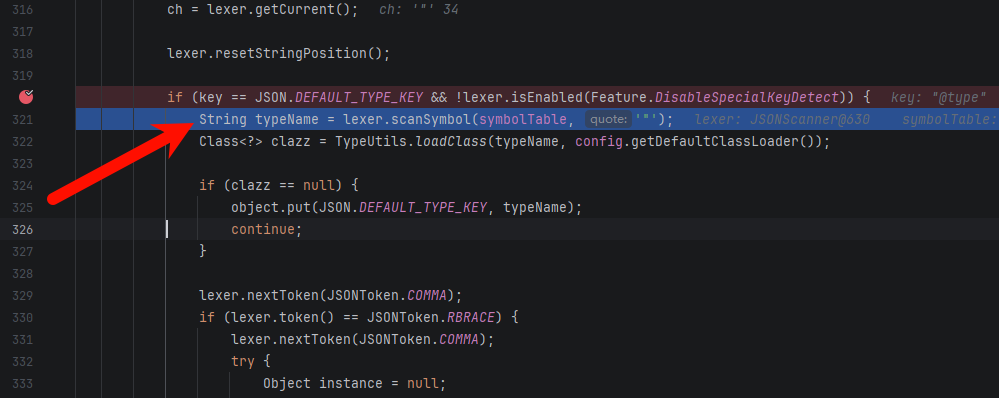 光跑通还不够,接下来打断点进去看看 FastJson 底层到底干了什么。