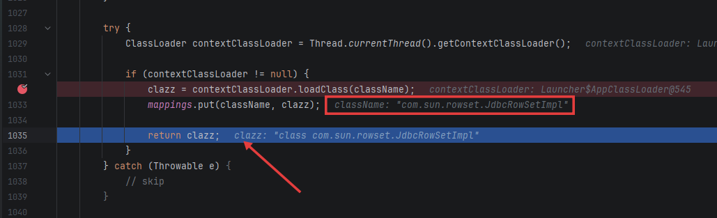 clazz: "class com.sun.rowset.JdbcRowSetImpl" ← 字符串成功变成 Class 对象
