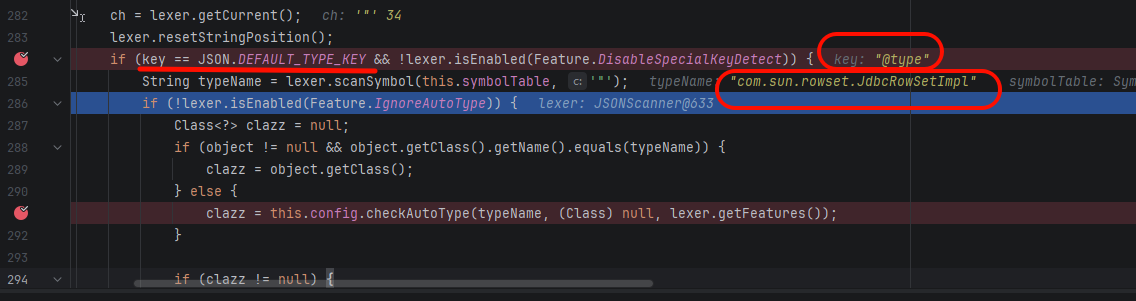 函数开头有几个固定的快速检测(hash 校验),com.sun.rowset.JdbcRowSetImpl 不会在这里触发: