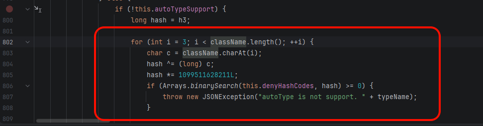 autoTypeSupport这个开关是进入黑白名单检测的前提条件,但 1.2.47 利用的是缓存机制——缓存的查找发生在黑白名单检测之前,所以压根就没进到检测分支,直接 return 了,完全绕过了整个检测逻辑。这也是为什么换成低版本的 Fastjson 同样可行,是一个通杀的 Payload。