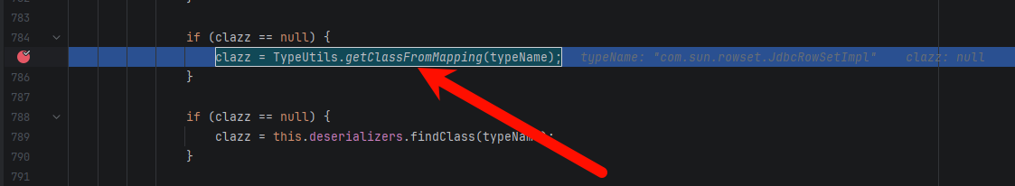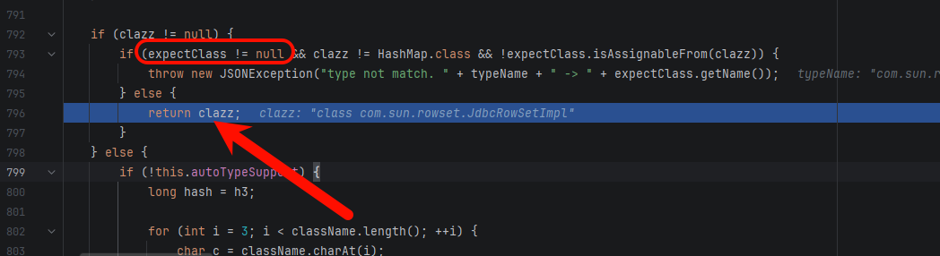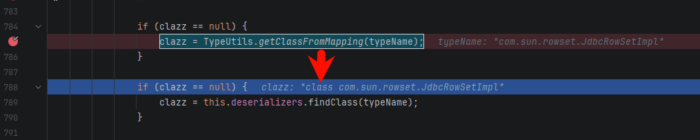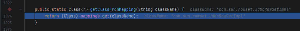 条件不成立,直接返回 class,值为 com.sun.rowset.JdbcRowSetImpl: