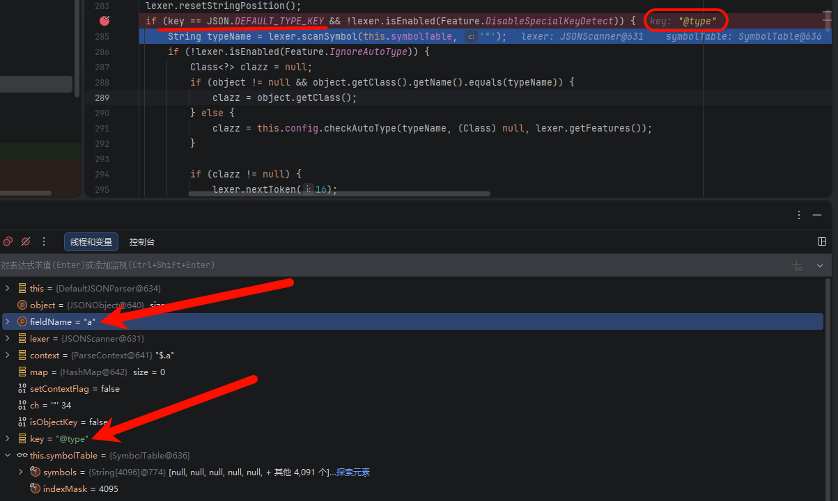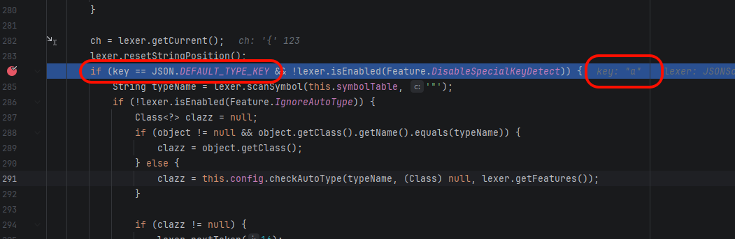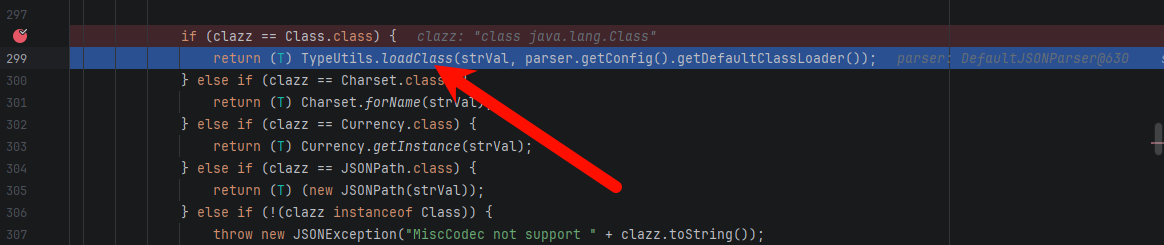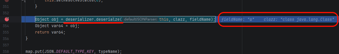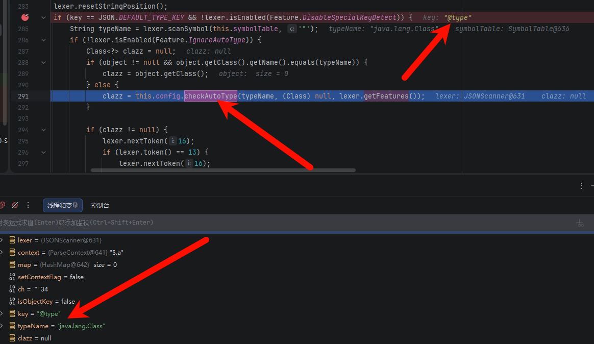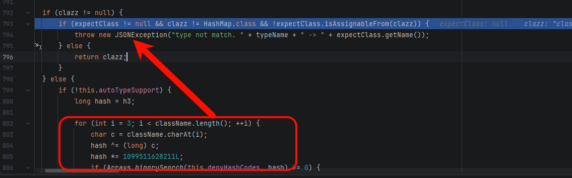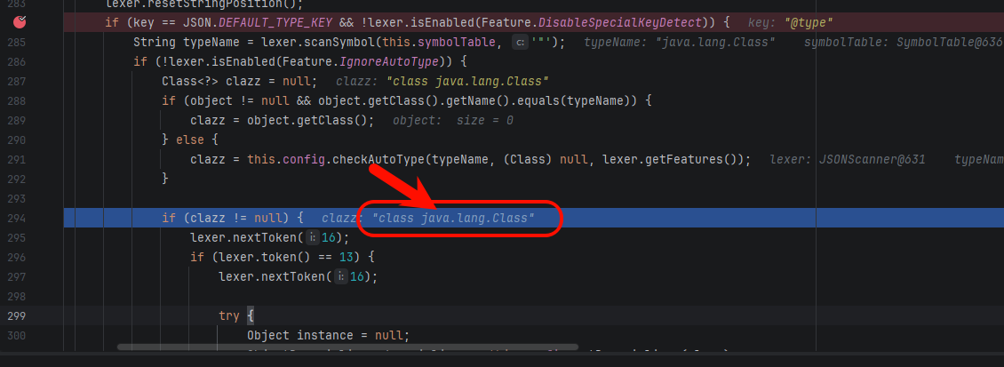 接着再次进入 @type 判断函数,这次判断的是 a 里面 @type 的值(即 java.lang.Class):