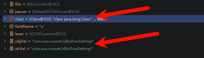 此时 class 的值已经是 com.sun.rowset.JdbcRowSetImpl: