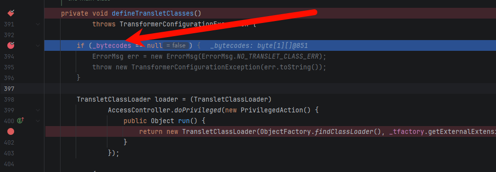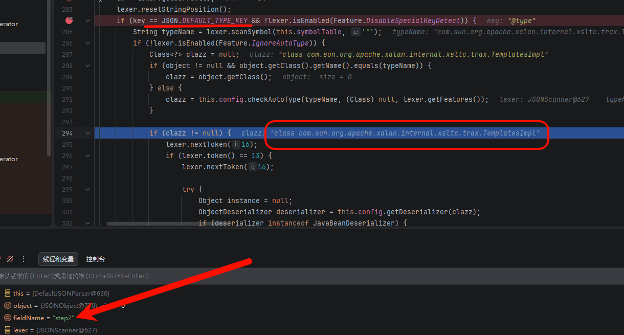 前面步骤差不多,直接跳到读取检测完 step2 的 com.sun.org.apache.xalan.internal.xsltc.trax.TemplatesImpl 值这里开始。