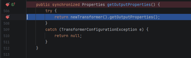 调用了 newTransformer().getOutputProperties(),跟进去。