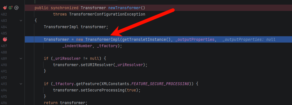 进入 new TransformerImpl(getTransletInstance(), _outputProperties, _indentNumber, _tfactory)