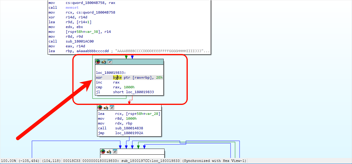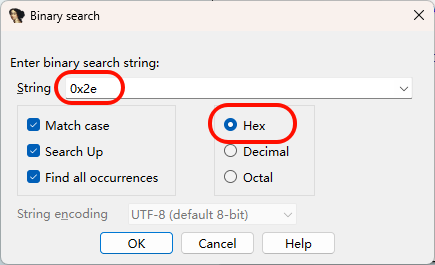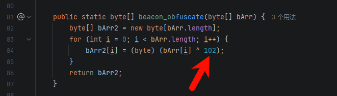 以 64 位为例,打开解密后的 beacon.x64.dll,按 Alt+B 搜索 xor 0x2e: