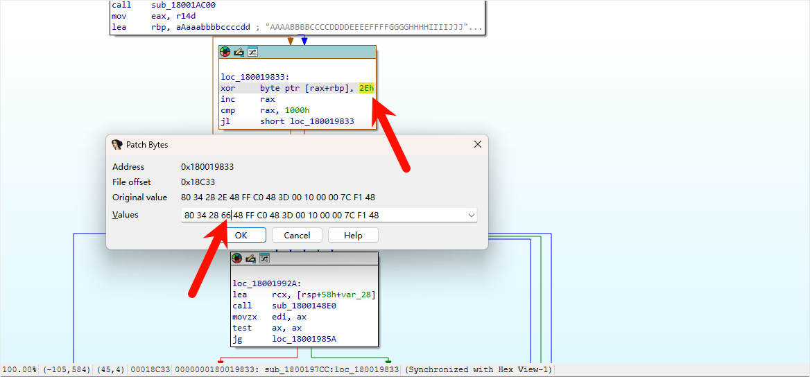 通过 Edit → Patch program → Change byte,把 2E 改为自定义的值: