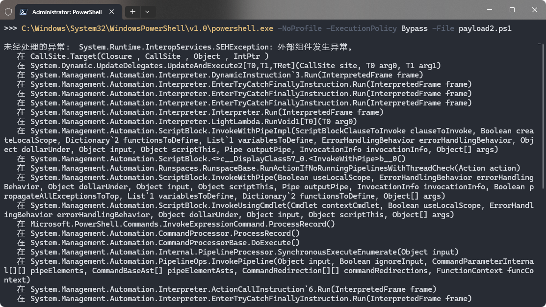 但是测试发现——经过 CS 加密的 payload 跑不起来,混淆原项目单独运行是没问题的,只要经过 CS 那层加密就不行了: