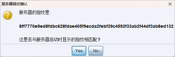客户端连接时会弹出证书指纹确认框: