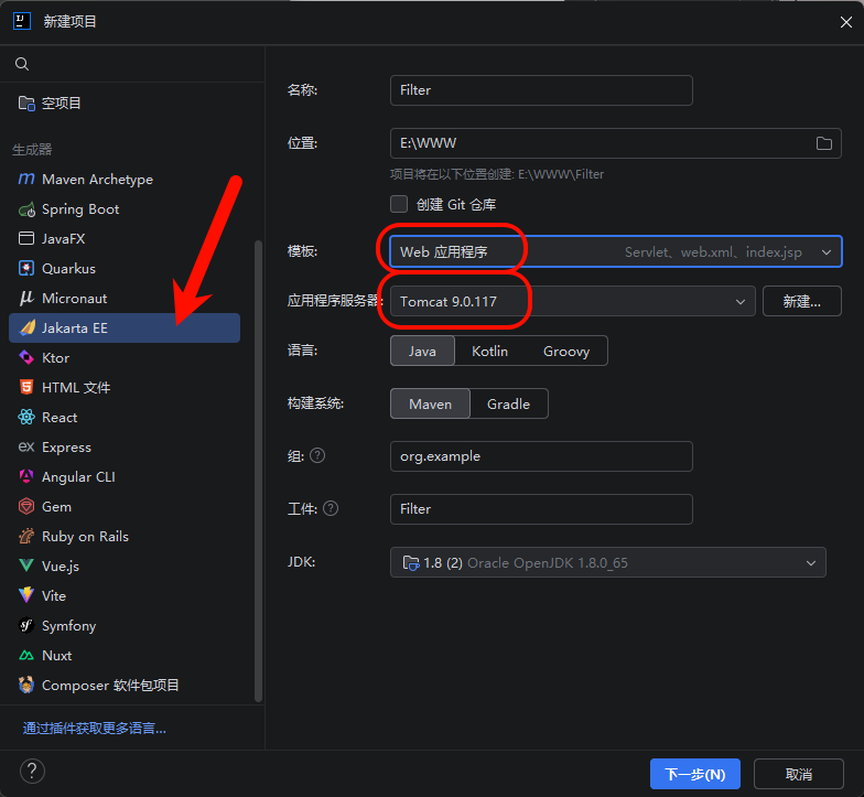 注意:Jakarta EE 高版本需要高版本的 JDK,这里换成低版本的 Java EE 8 就行。