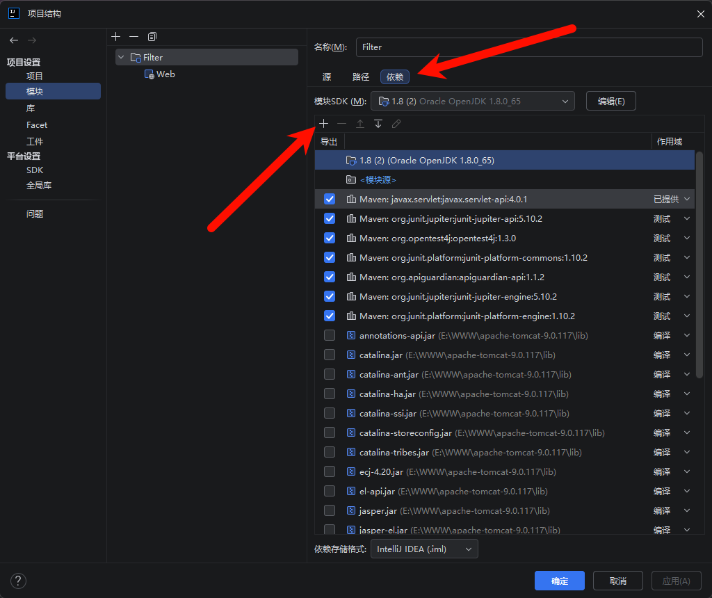 导入 Tomcat 的本地依赖 lib/,把整个 lib 目录加进去(也可以用 Maven 重新下载)。