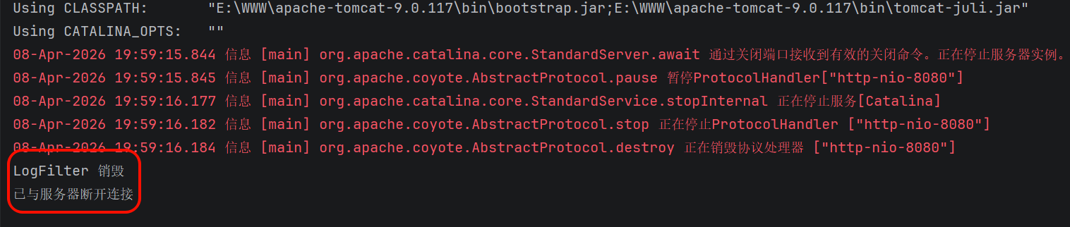 init:Tomcat 启动、加载 Filter 时调用一次。doFilter:每次请求匹配时调用。destroy:Tomcat 正常关闭时调用一次。