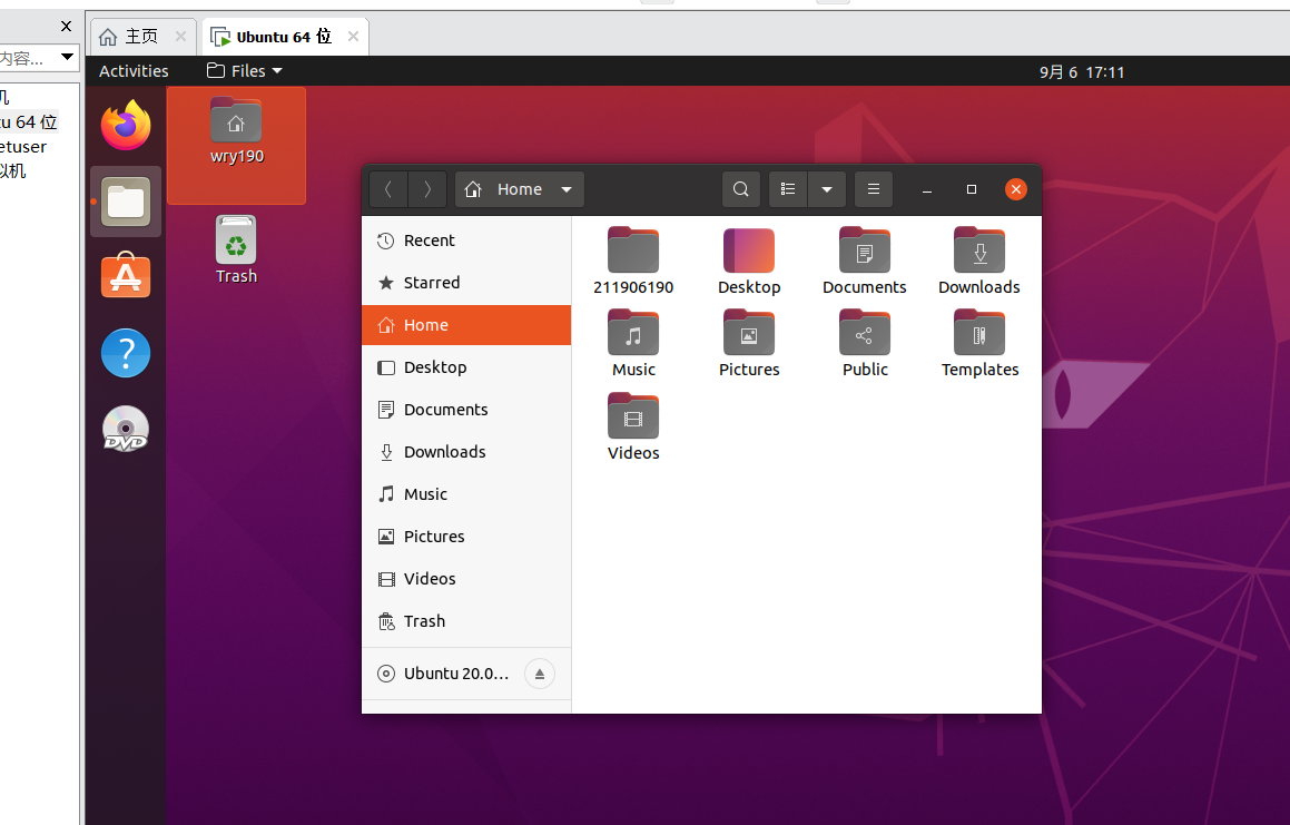 在Ubuntu系统的home目录下创建一个目录,目录命名为学号。