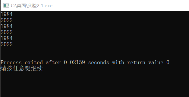 #include <stdio.h> int main() { char x[2][4] = { {'1', '9', '8', '4'}, {'2', '0', '2', '2'} }; int i, j; char *p; // 指针变量,存放char类型数据的地址 char (*q)[4]; // 指针变量,指向包含4个char型元素的一维数组 // 使用数组名、下标访问二维数组元素 for(i=0; i<2; ++i) { for(j=0; j<4; ++j) printf("%c", x[i][j]); printf("\n"); } // 使用指针变量p间接访问二维数组元素 for(p = &x[0][0], i = 0; p < &x[0][0] + 8; ++p, ++i) { printf("%c", *p); if( (i+1)%4 == 0) printf("\n"); } // 使用指针变量q间接访问二维数组元素 for(q=x; q<x+2; ++q) { for(j=0; j<4; ++j) printf("%c", *(*q+j)); printf("\n"); } return 0; }