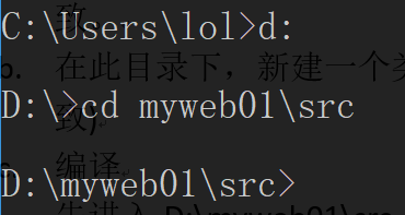 先进入D:\myweb01\src(从源码的根目录进行编译)