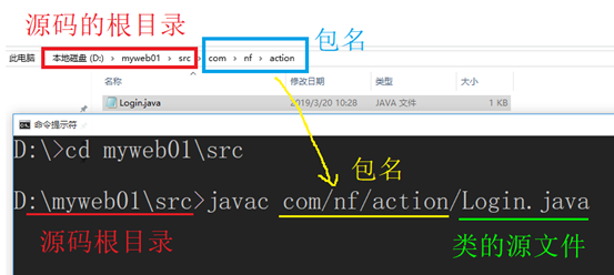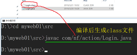 a.新建包名的目录D:\myweb01\src\com\nf\action ,跟Login.java的package报名保持一致。