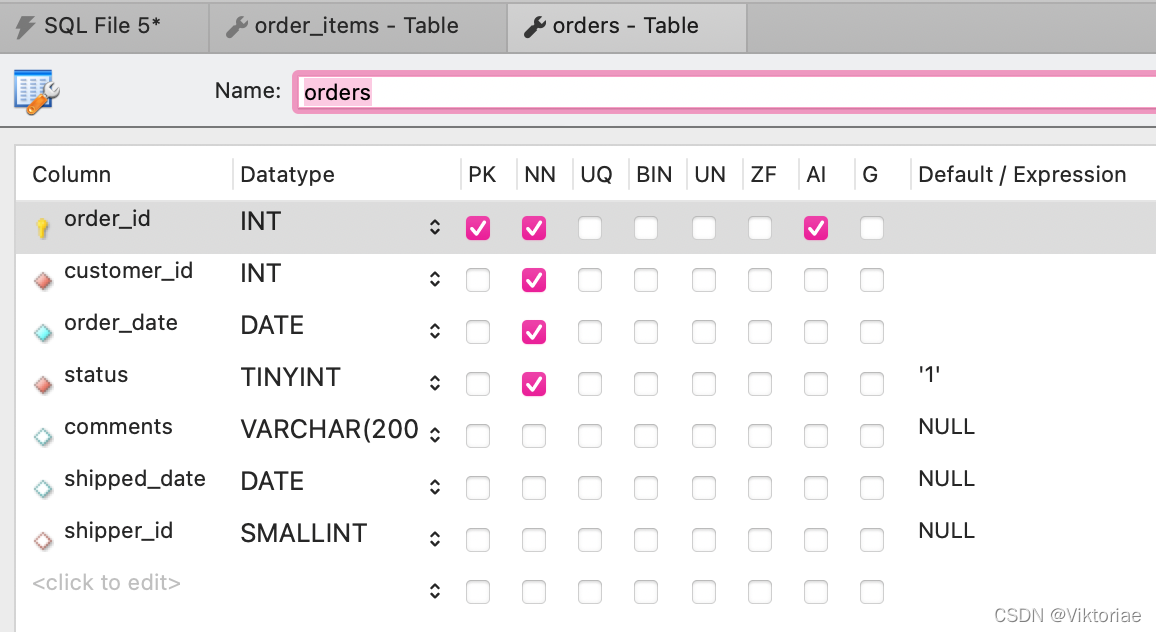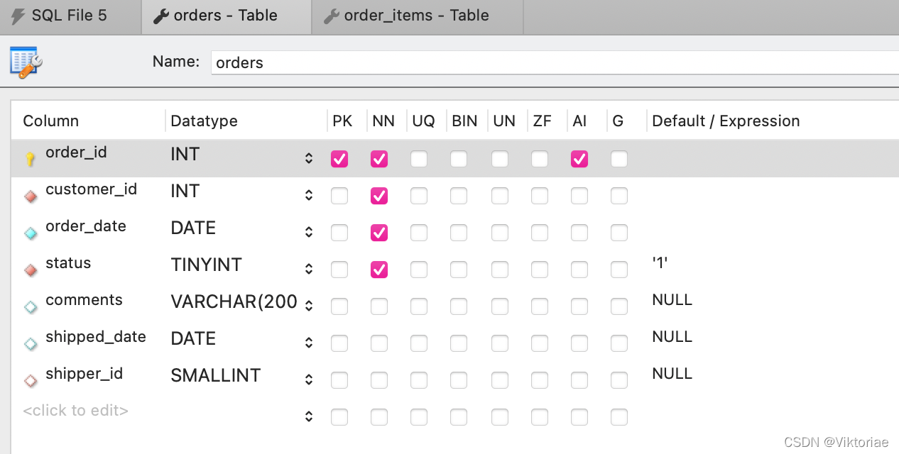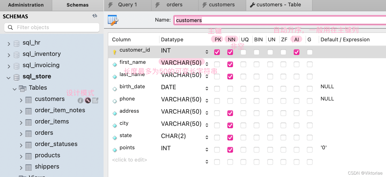 注:workbench 中扳手图标可打开表格的设计模式,查看或修改表中各列(属性),可以看到谁是主键。省略排序语句的话会默认按主键排序