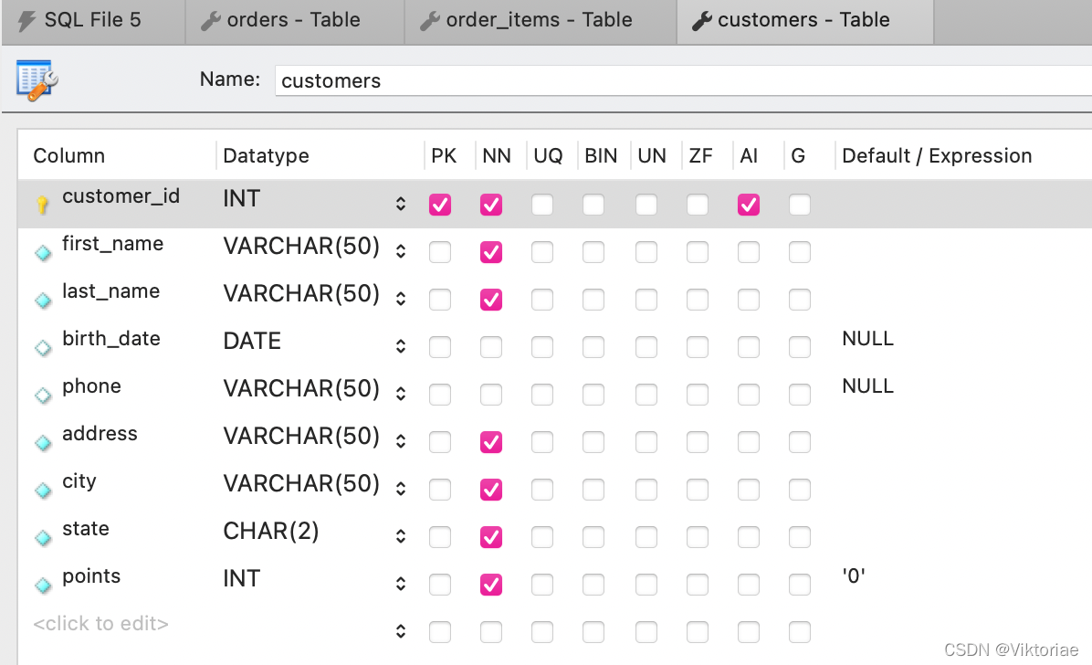 SELECT * FROM customers WHERE points > 3000 /WHERE state != ‘va’ – ‘VA’/'va’一样