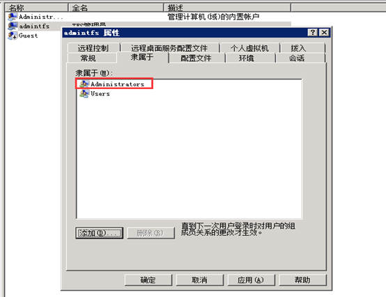 添加用户到administrators组: