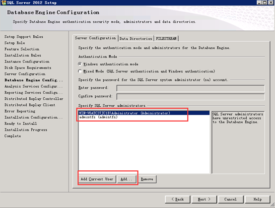 将系统管理员、admintfs加入数据库管理员,其它默认: