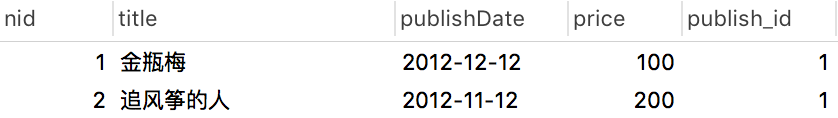 方式1: publish_obj=Publish.objects.get(nid=1) book_obj=Book.objects.create(title="金瓶眉",publishDate="2012-12-12",price=100,publish=publish_obj) 方式2: book_obj=Book.objects.create(title="金瓶眉",publishDate="2012-12-12",price=100,publish_id=1)