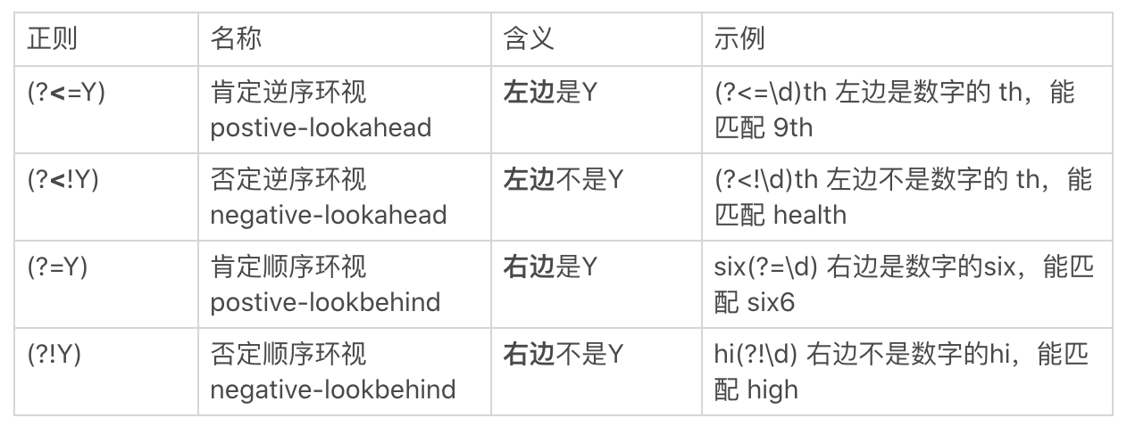 环视就是要求匹配部分的前面或后面要满足(或不满足)某种规则,有些地方也称环视为零宽断言。