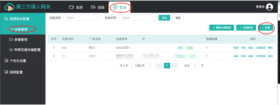 在网页上选择【配置】-【设备管理】-【新增】-【Plarform】
