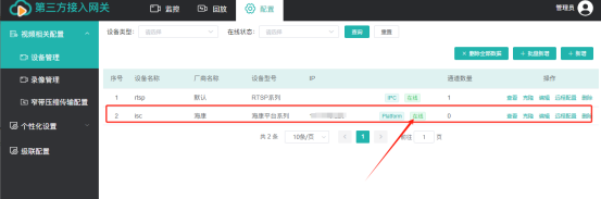 待设备的状态为在线,说明网关已经成功登录ISC平台,这个时候就可以同步通道数据了。