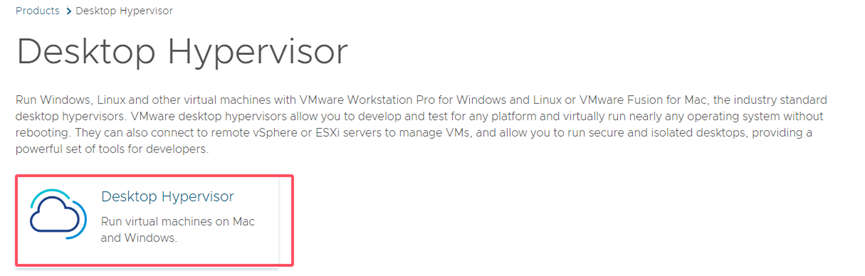在官网首页点击【Products】→【SEE DESKTOP HYPERVISORS】。