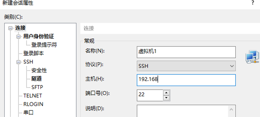 新建会话命名,输入"名称"与"主机IP 地址"。
