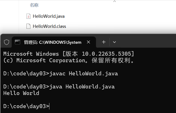 -执行java HelloWorld(运行中错写成了java Hello World.java也运行成功了,可能与JDK版本有关)