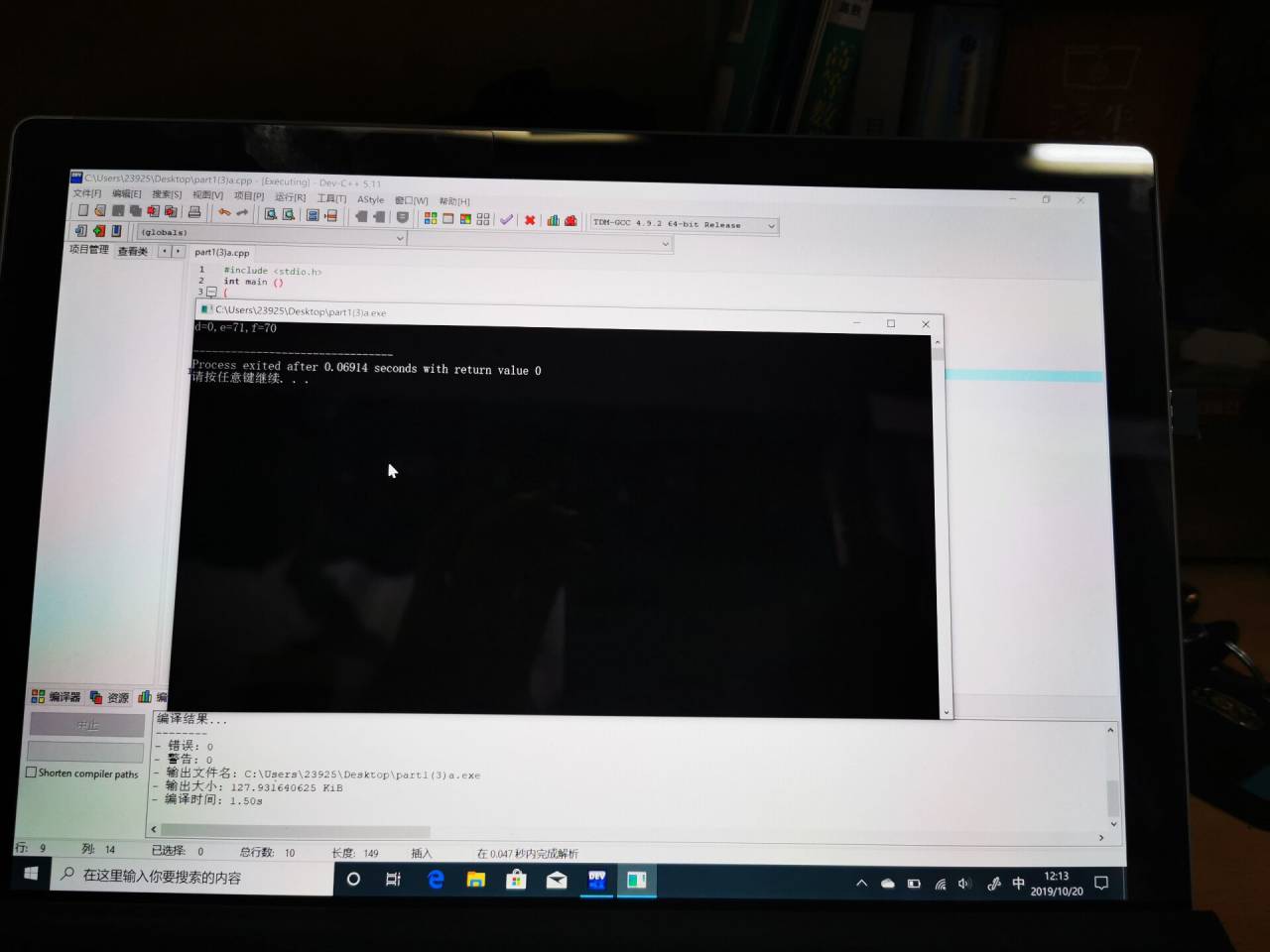 printf("d=%d,e=%d,f=%d\n",d,e,f);