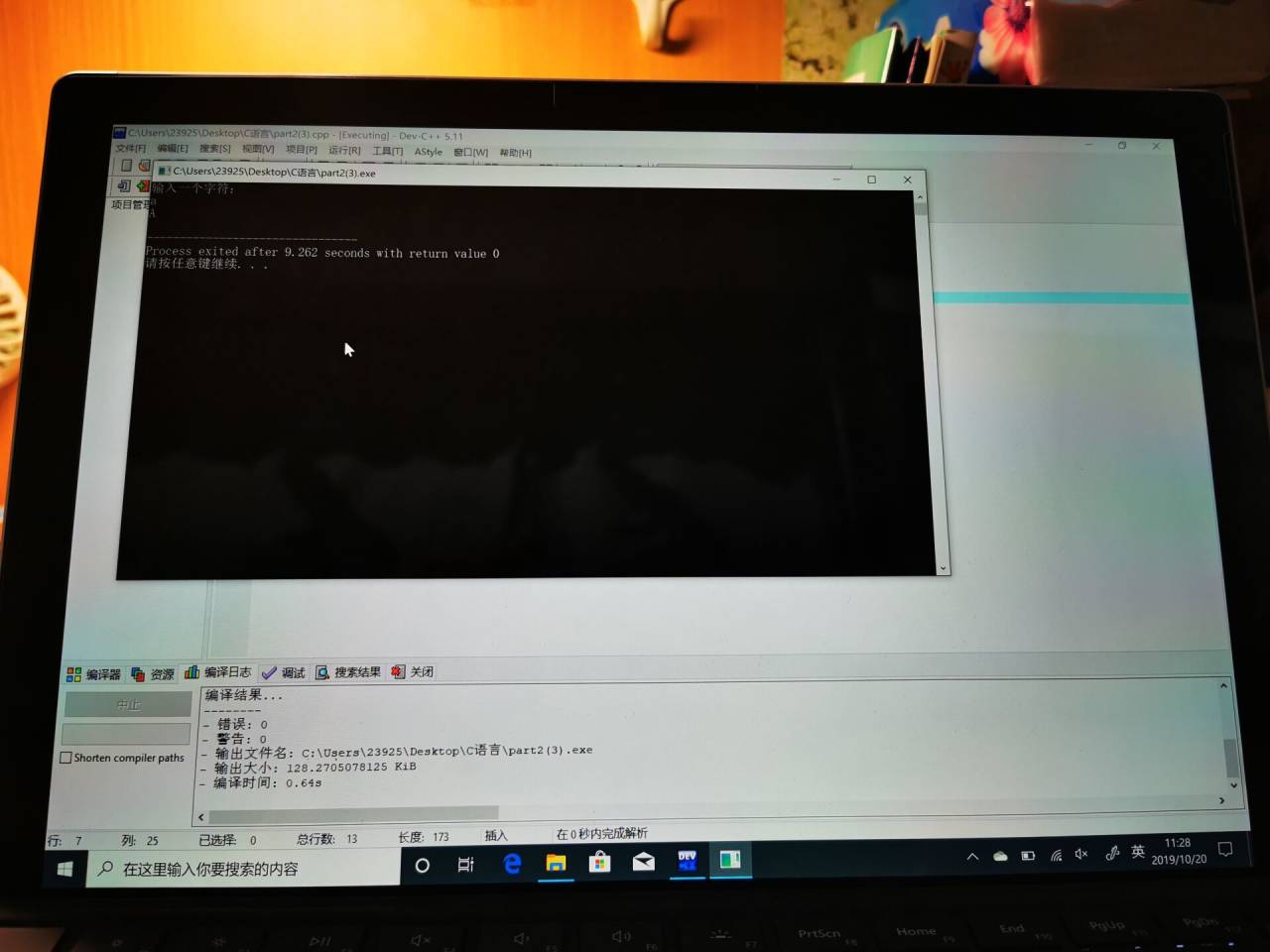printf("输入一个字符:\n");