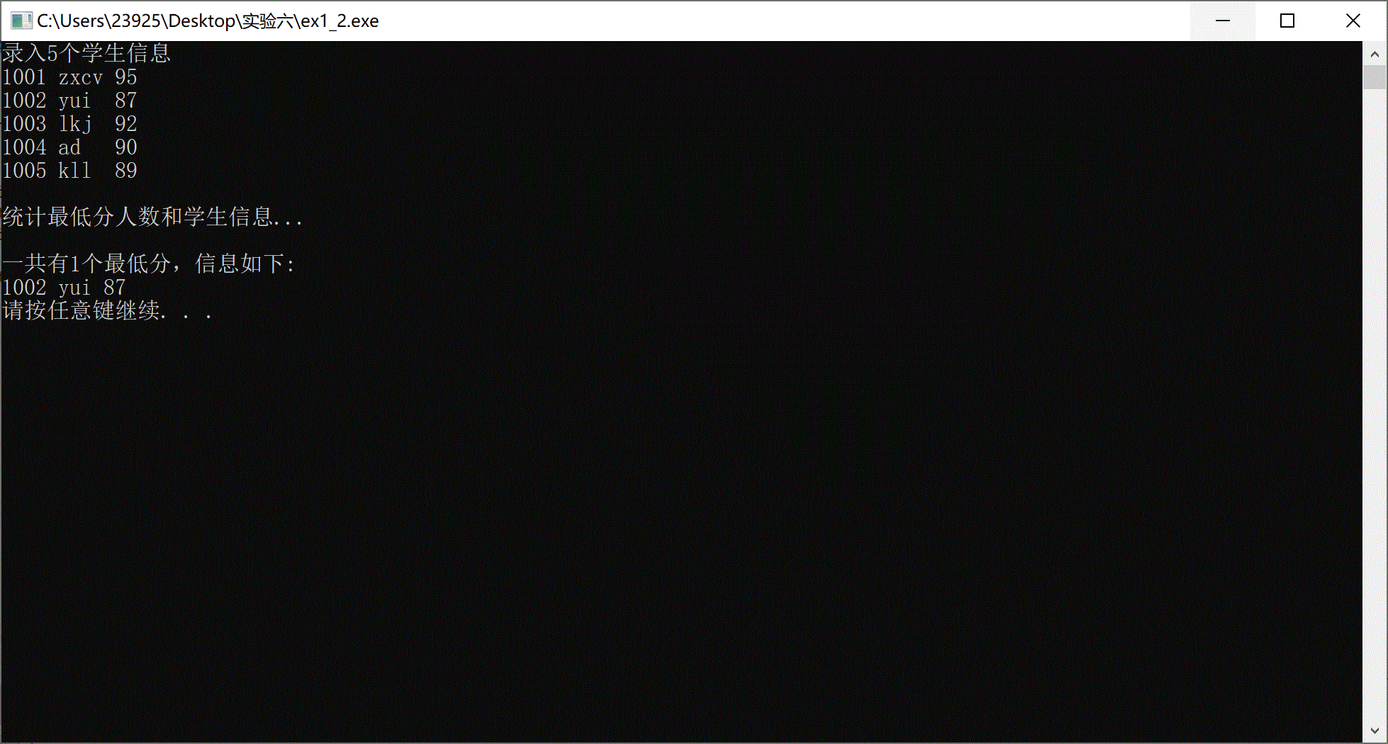 printf("\n一共有%d个最低分,信息如下:\n", count);