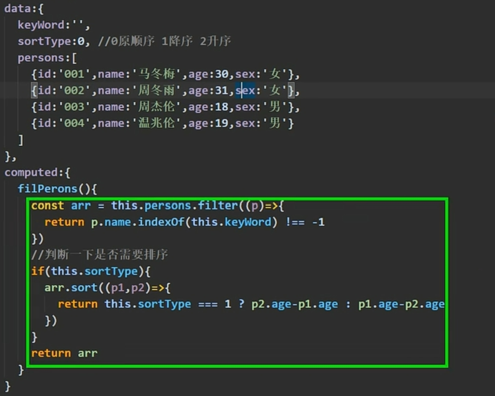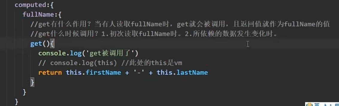 上图简写:computed:{fullName( ){ } } fullName(){ }//当get用