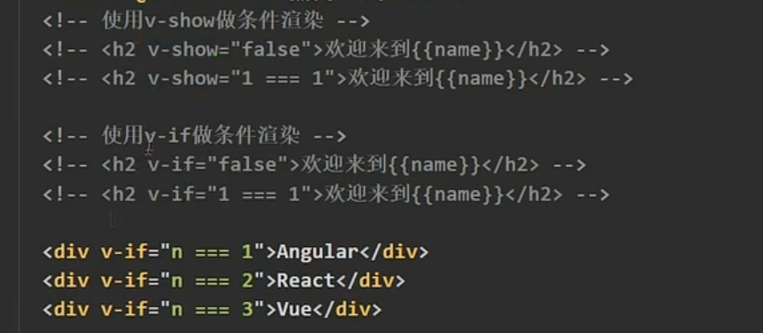 注意:v-if可以和:v-else-if、v-else一起使用,但要求结构不能被“打断”。