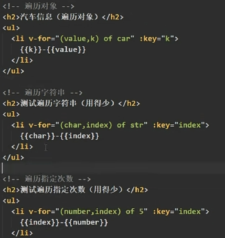 2.语法:v-for="(item, index) in xxx" :key="yyy"