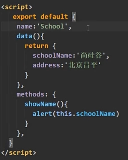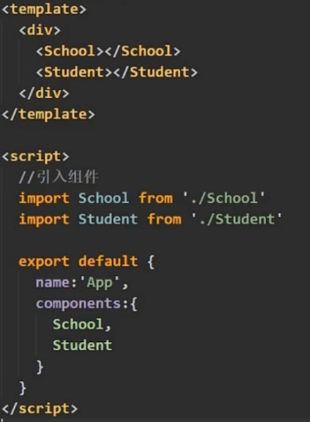 上图中,name:“school”;组件名通常与xxx.vue名相同(name省略也可以运行,组件名则会被随便取)