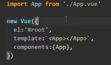 简写: render:h=>h('App'),