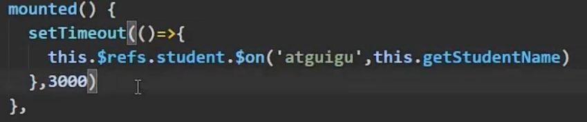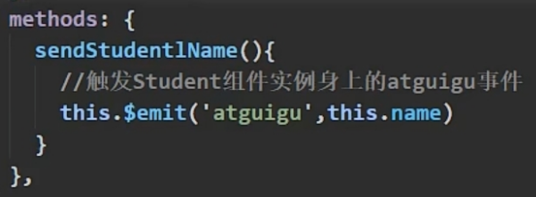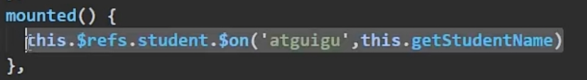 (2)通过this.$refs.xxx.$on('atguigu”,回调)绑定自定义事件时,回调要么配置在methods中,要么用箭头函数,否则this指向会出问题。