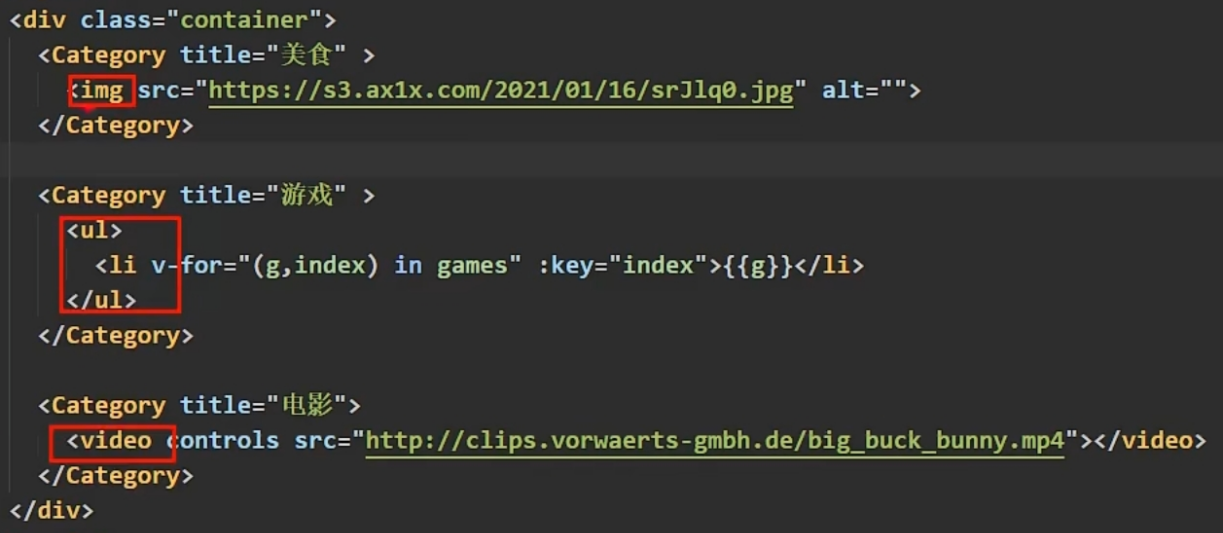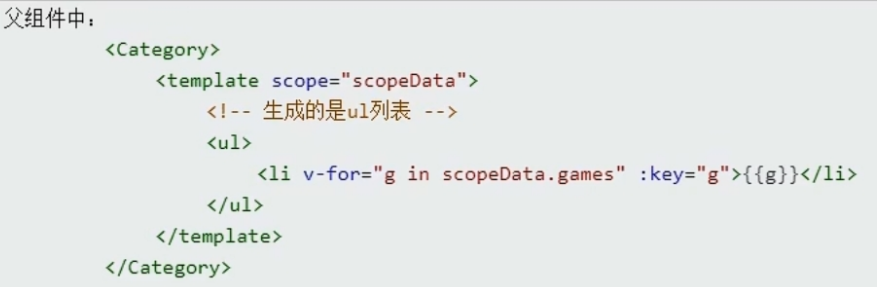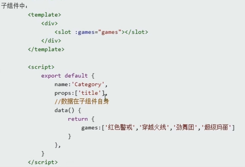 1.理解:数据在组件的自身,但根据数据生成的结构需要组件的使用者来决定。( games 数据在 Category 组件中,但使用数据所遍历出来的结构由 App 组件决定)