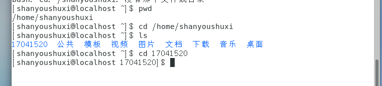 3.进入以自己学号命名的目录,查看当前目录,然后创建以自己姓名拼音命名的目录