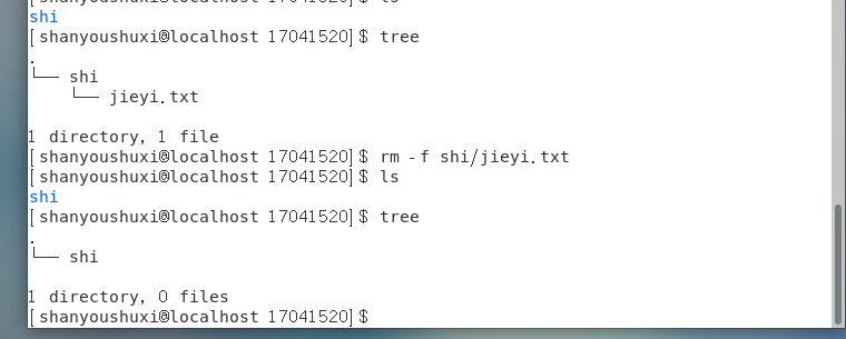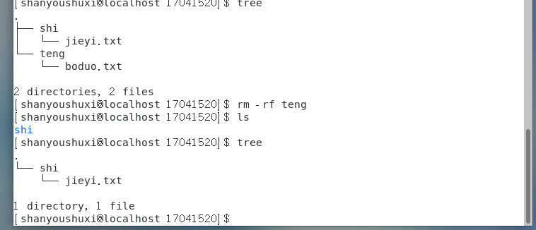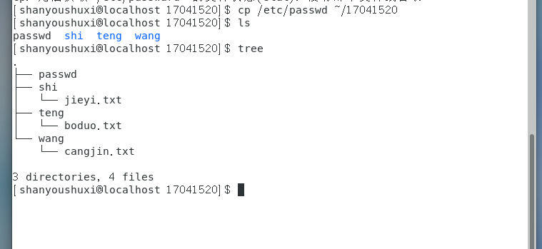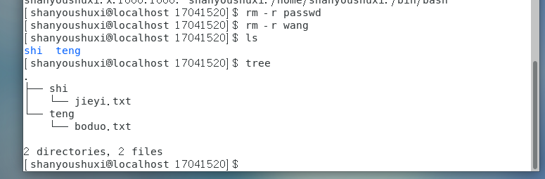 6.返回自己学号命名的目录,查看tree命令是否可以使用,不能使用的话,安装tree,安装成功后使用该命令