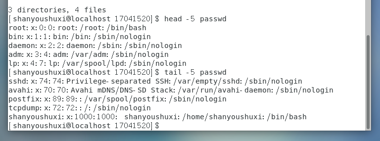 9.用head查看passwd文件的前5行内容,用tail查看passwd文件的后5行内容