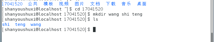 2.在用户主目录下创建一个以自己学号命名的目录并查看