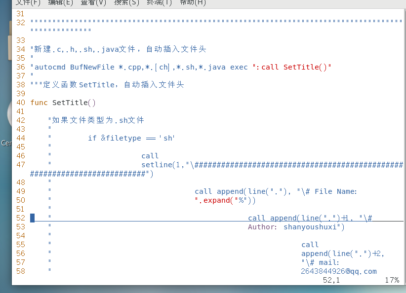 autocmd BufNewFile *.cpp,*.[ch],*.sh,*.java exec ":call SetTitle()"