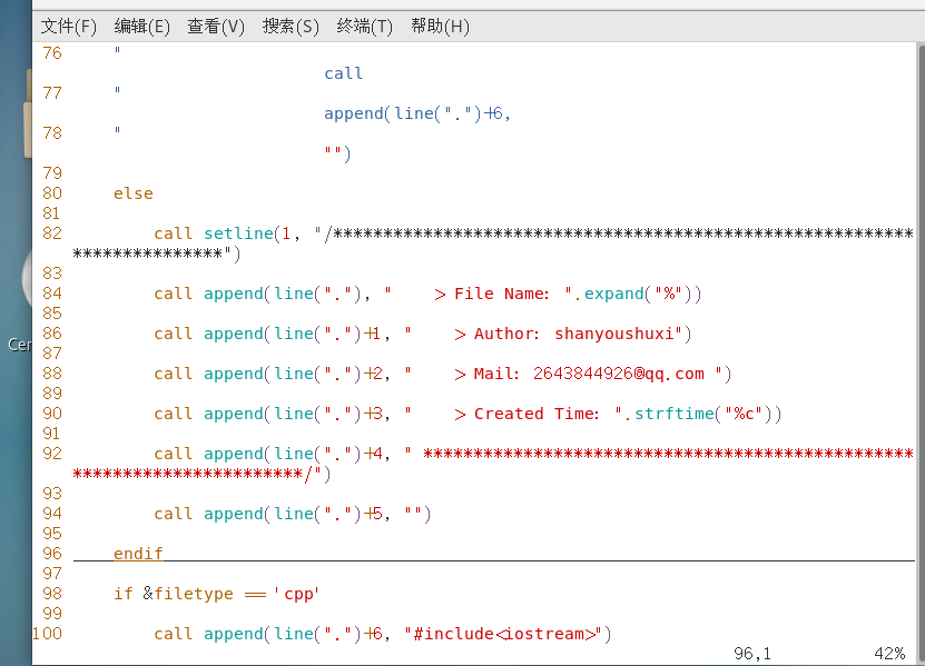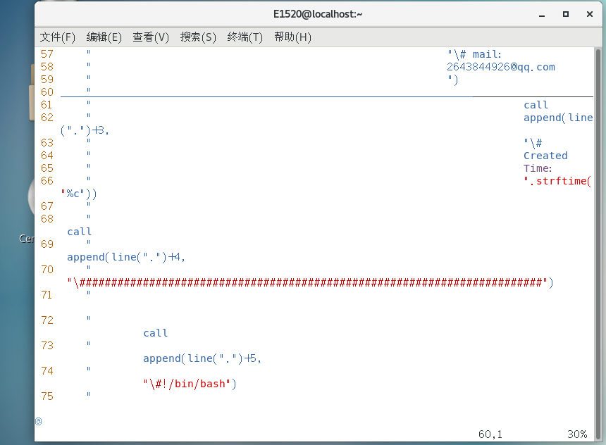 call append(line(".")+2, "\# mail: 2643844926@qq.com ")