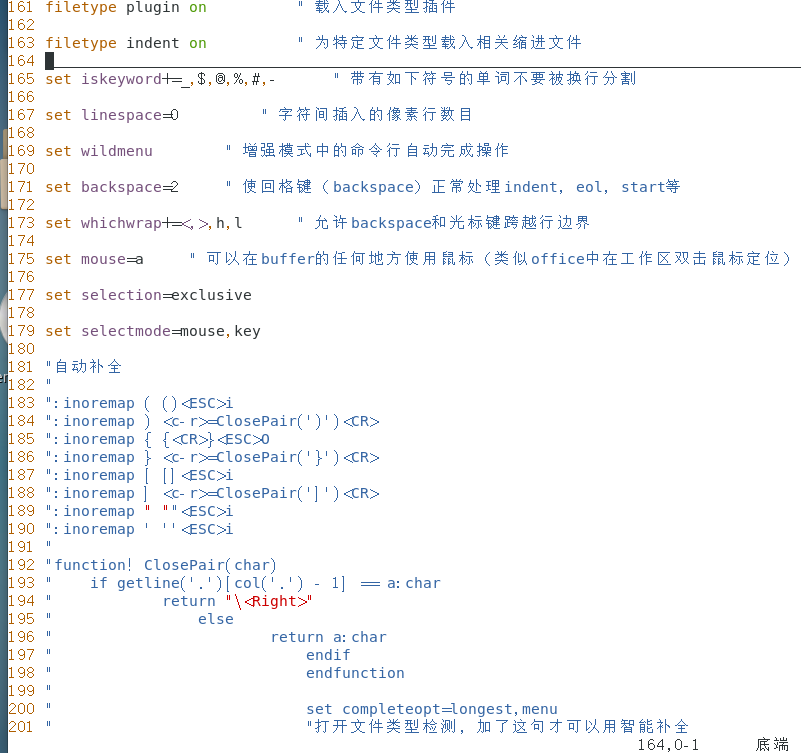 set mouse=a " 可以在buffer的任何地方使用鼠标(类似office中在工作区双击鼠标定位)