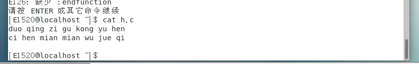d)创建并打开一个以.c结尾的文件,如vim h.c